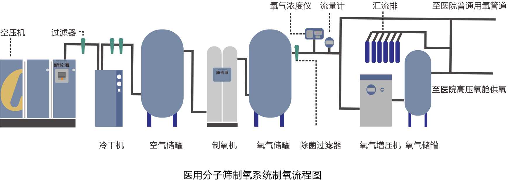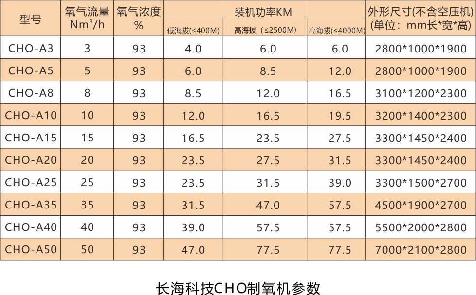 ●長(zhǎng)海CHO-G系列型號(hào),采用高純制氧工藝流程,氧濃度可達(dá)到99.5%。